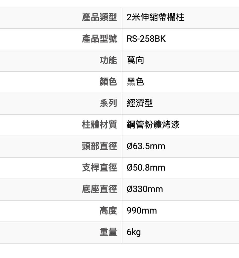 2米經濟型伸縮欄柱(黑)